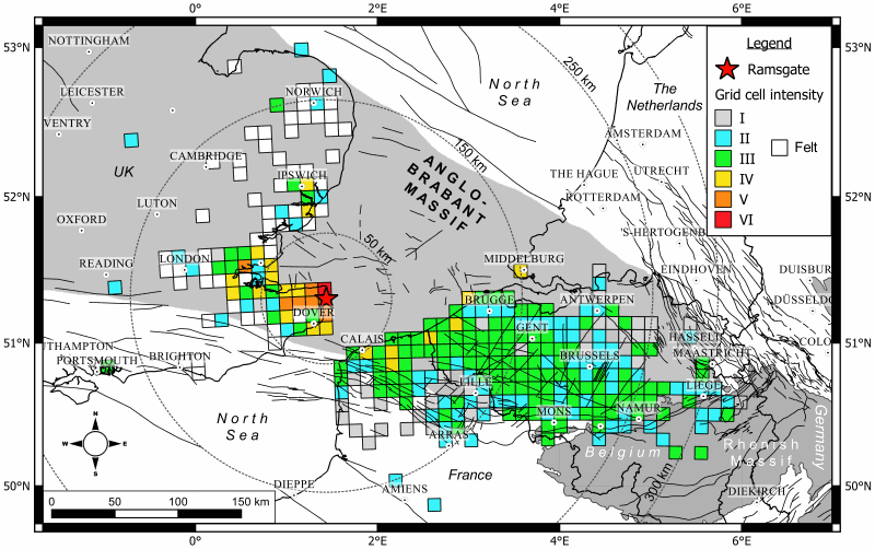 • Van Noten, K., Lecocq, T., Sira, C., Hinzen, K.-G., and Camelbeeck, T. 2017. Path and site effects deduced from merged transfrontier internet macroseismic data of two recent M4 earthquakes in northwest Europe using a grid cell approach, Solid Earth, 8, 453-477, https://doi.org/10.5194/se-8-453-2017.