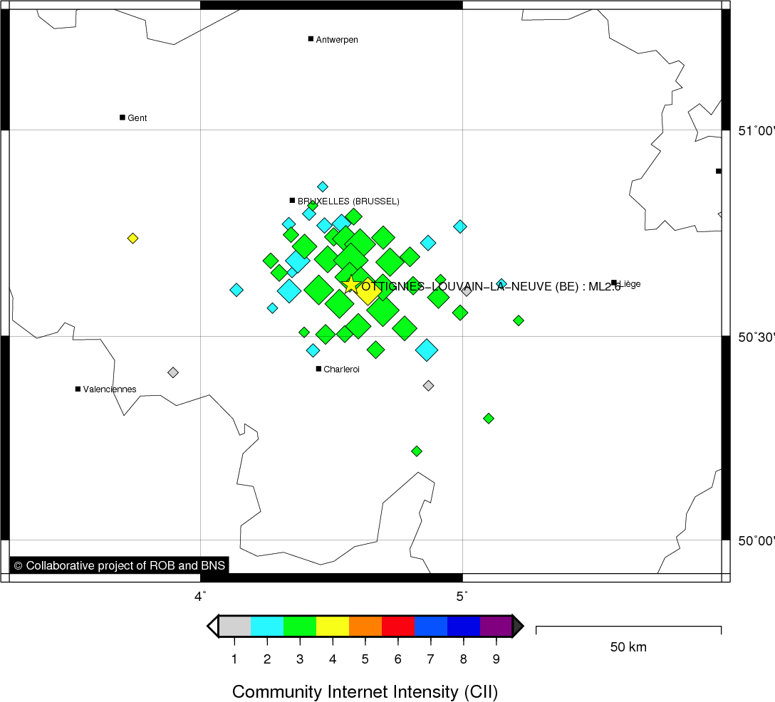 | Epicentral coordinates | 50.625° N, 4.575° E Uncertainty ± 0.7 km |