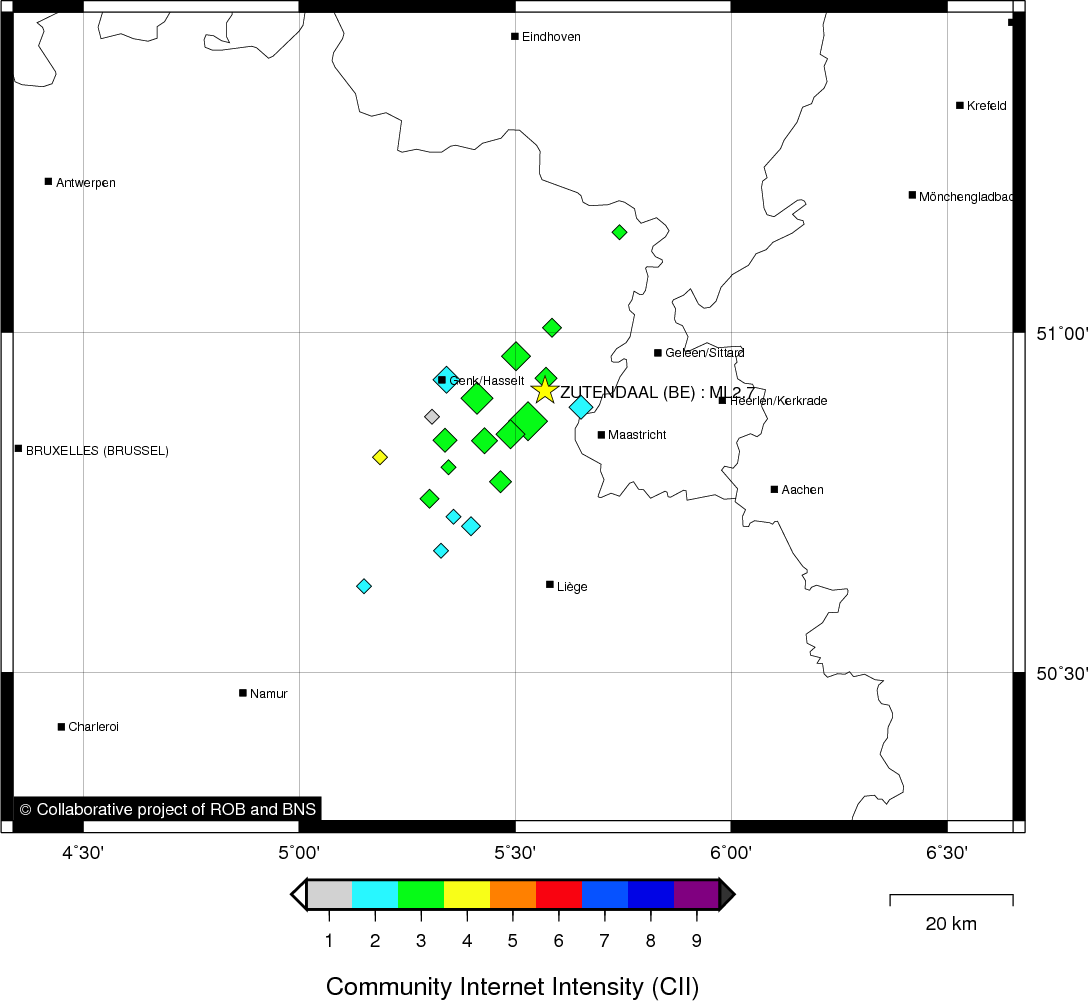 | Epicentral coordinates | 50.915° N, 5.560° E Uncertainty ± 0.5 km |