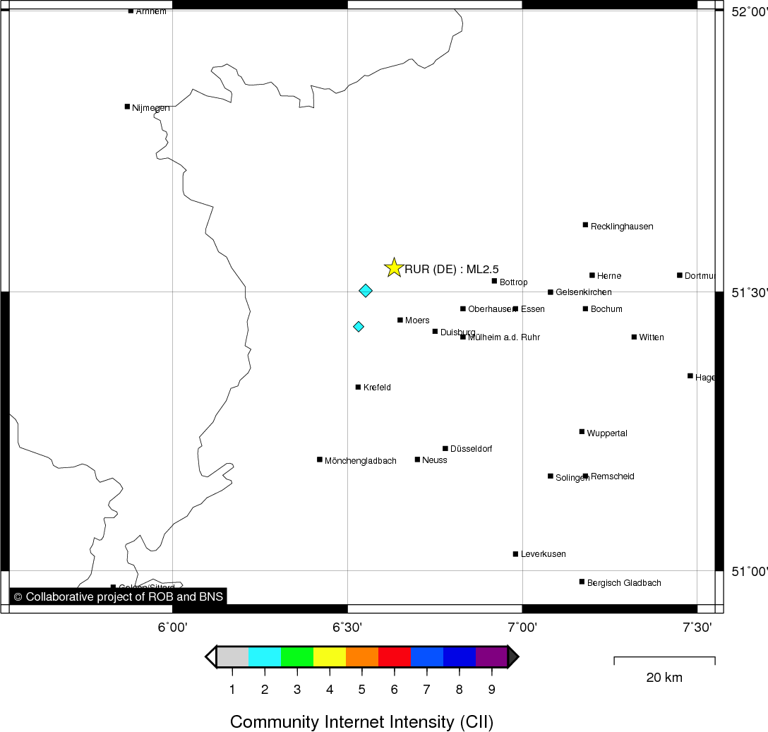 Epicentral coordinates 51.543° N, 6.634° E Uncertainty ± 13.1 km