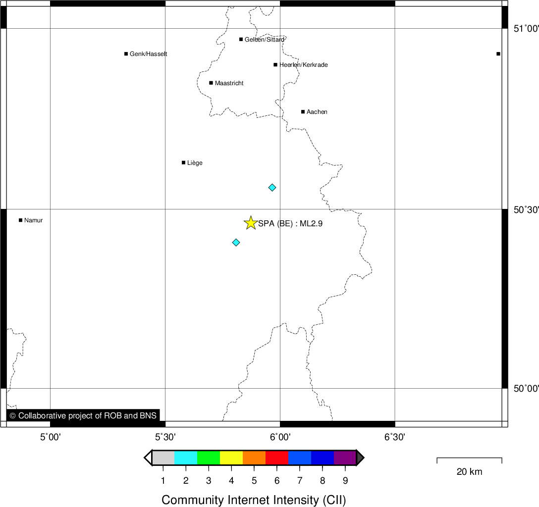 Epicentral coordinates 50.462° N, 5.873° E Uncertainty ± 0.8 km