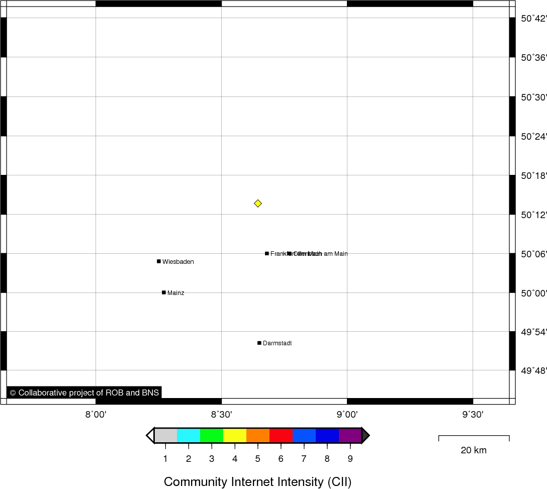 Epicentral coordinates 50.534° N, 5.740° E Uncertainty ± 3.8 km