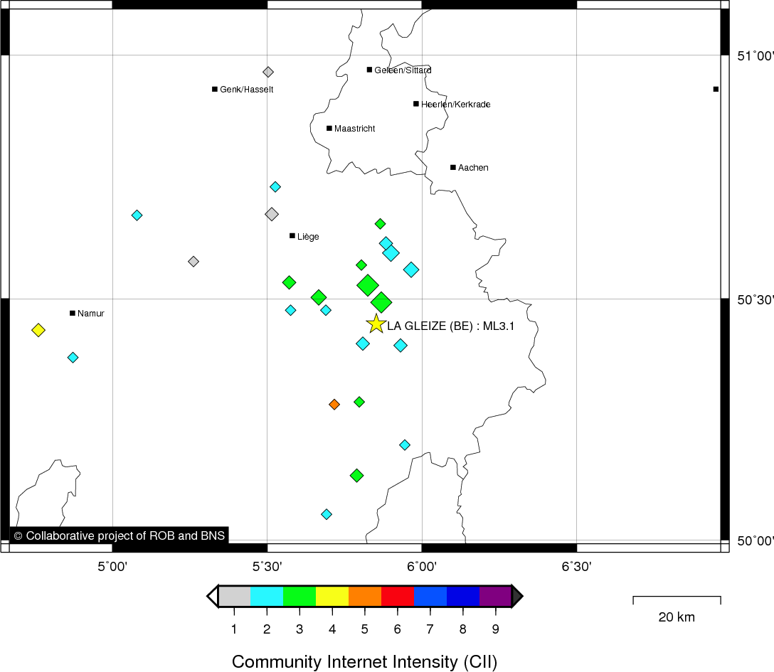 Epicentral coordinates 50.448° N, 5.853° E Uncertainty ± 0.5 km