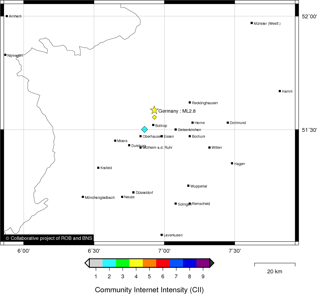 Epicentral coordinates 51.592° N, 6.930° E Uncertainty ± 1.7 km