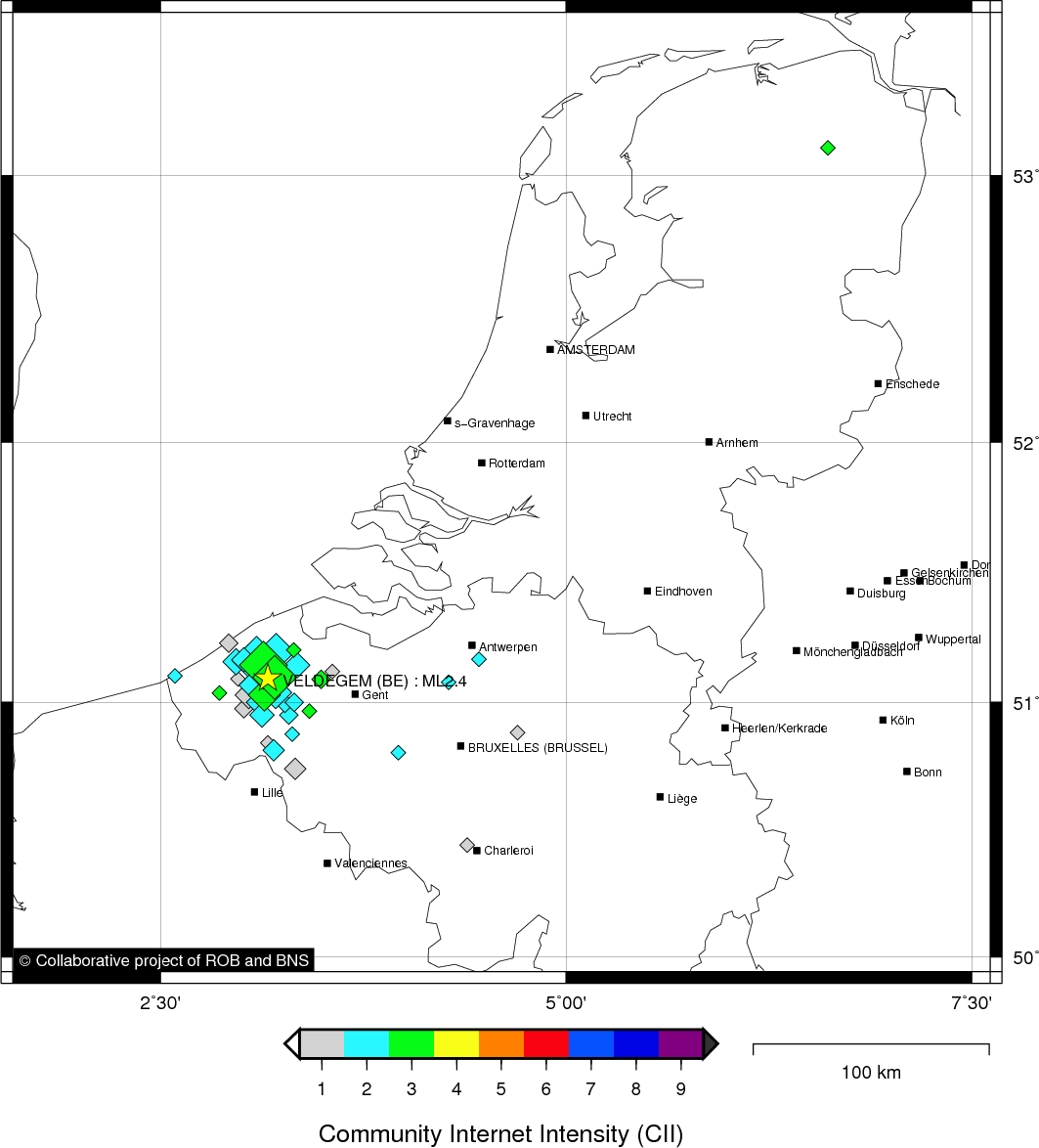 | Epicentral coordinates | 51.074° N, 3.146° E Uncertainty ± 1.6 km |