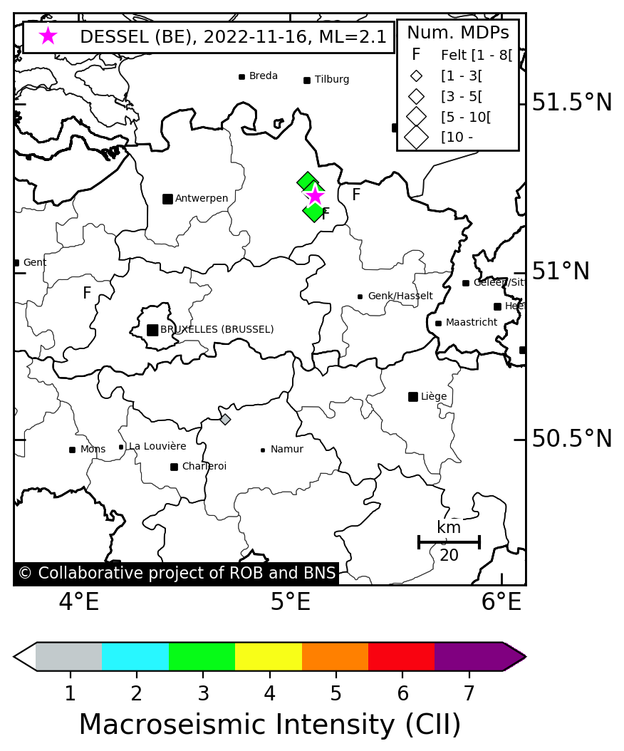 Epicentral coordinates 51.228° N, 5.117° E Uncertainty ± 0.6 km